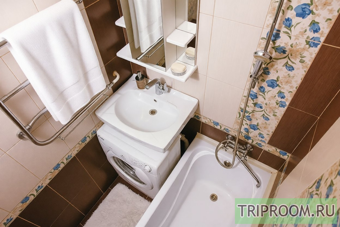 - В санузле выполнен свежий ремонт, установлена новая белоснежная сантехника. В распоряжении гостей все принадлежности для полноценного личного ухода: от стиральной машины-автомат до фена и банных халатов.